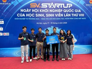 Từ ngày 17-19/04/2026 tại Học viện Ngân hàng đã diễn ra “Ngày hội Khởi nghiệp Quốc gia của học sinh, sinh viên lần thứ VIII “SV_STARTUP – Lần thứ VIII”. Cuộc thi năm nay đã nhận được 880 dự án khởi nghiệp của học sinh, sinh viên đến từ các cơ sở giáo dục trong đó có 135 dự án xuất sắc tham dự vòng chung kết cuộc thi SV Startup 2026. Sau các vòng thi, nhóm dự án “Refil 3D – Thiết kế và chế tạo máy tái chế nhựa in 3D lỗi và nhựa vỏ chai PET thành sợi in 3D” đã đạt giải Ba chung cuộc tại cuộc thi.