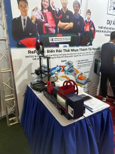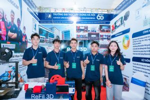 Hình ảnh nhóm dự án ” Refil 3D – Thiết kế và chế tạo máy tái chế nhựa in 3D lỗi và nhựa vỏ chai PET thành sợi in 3D” tại cuộc thi